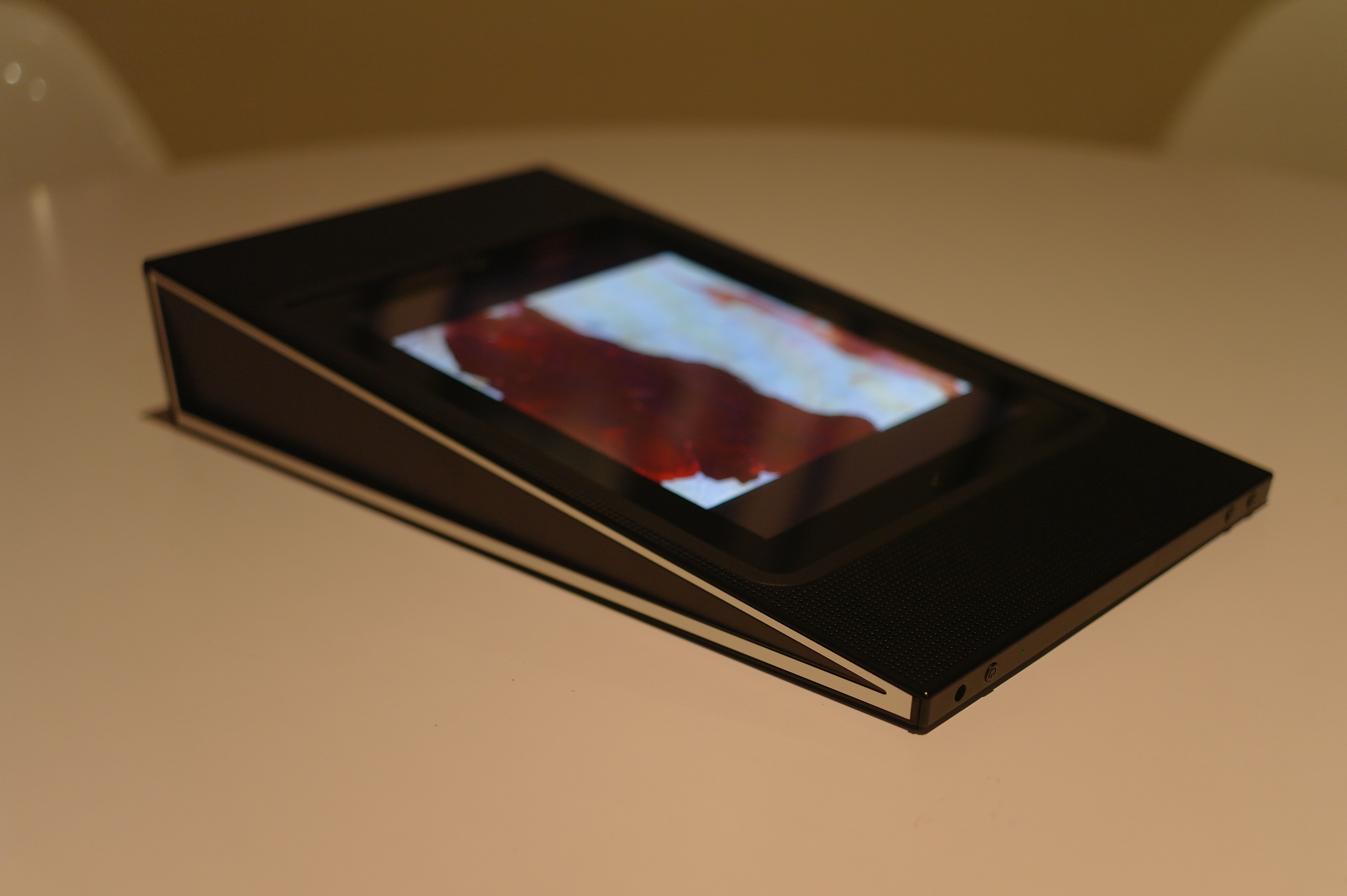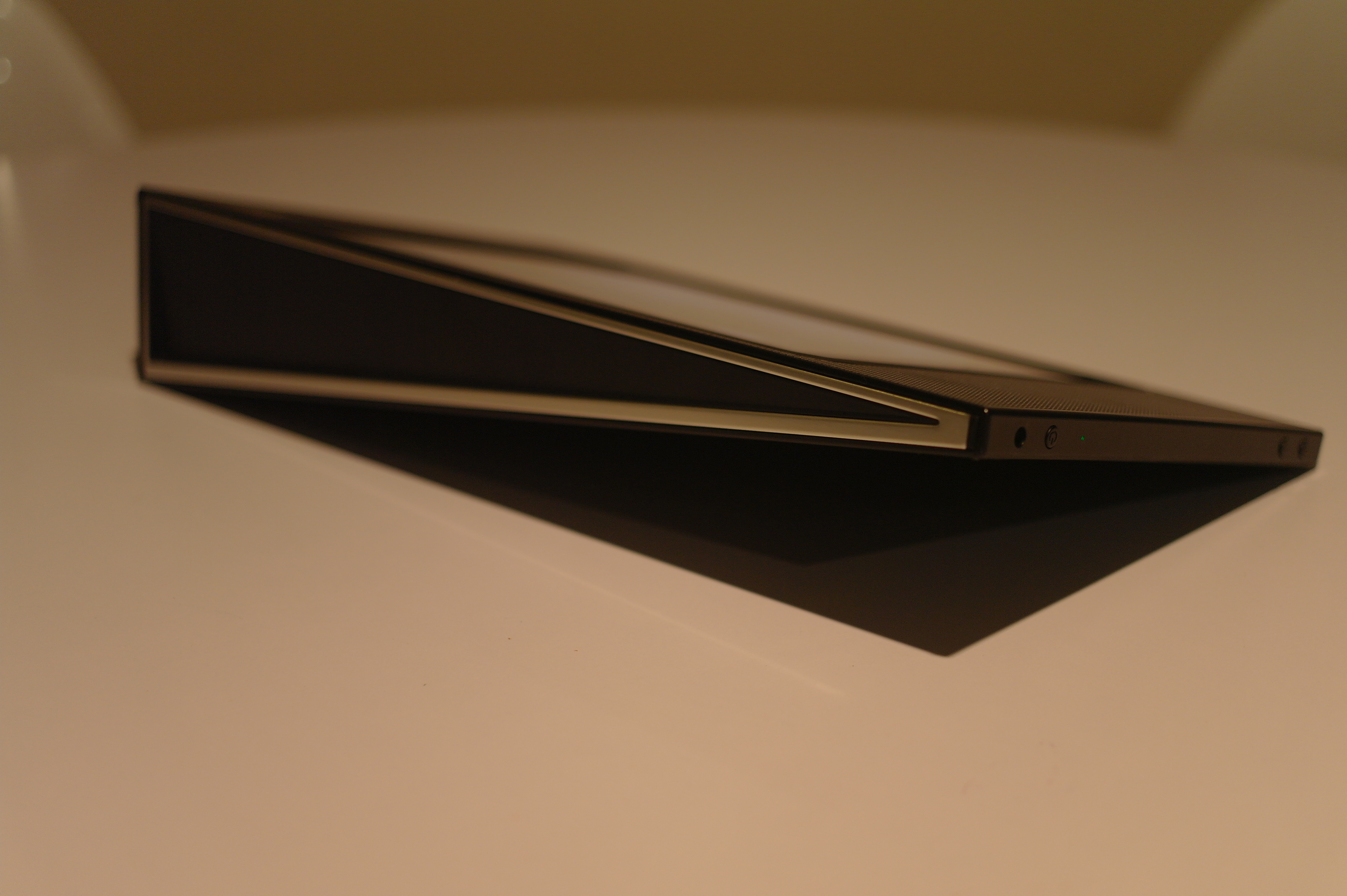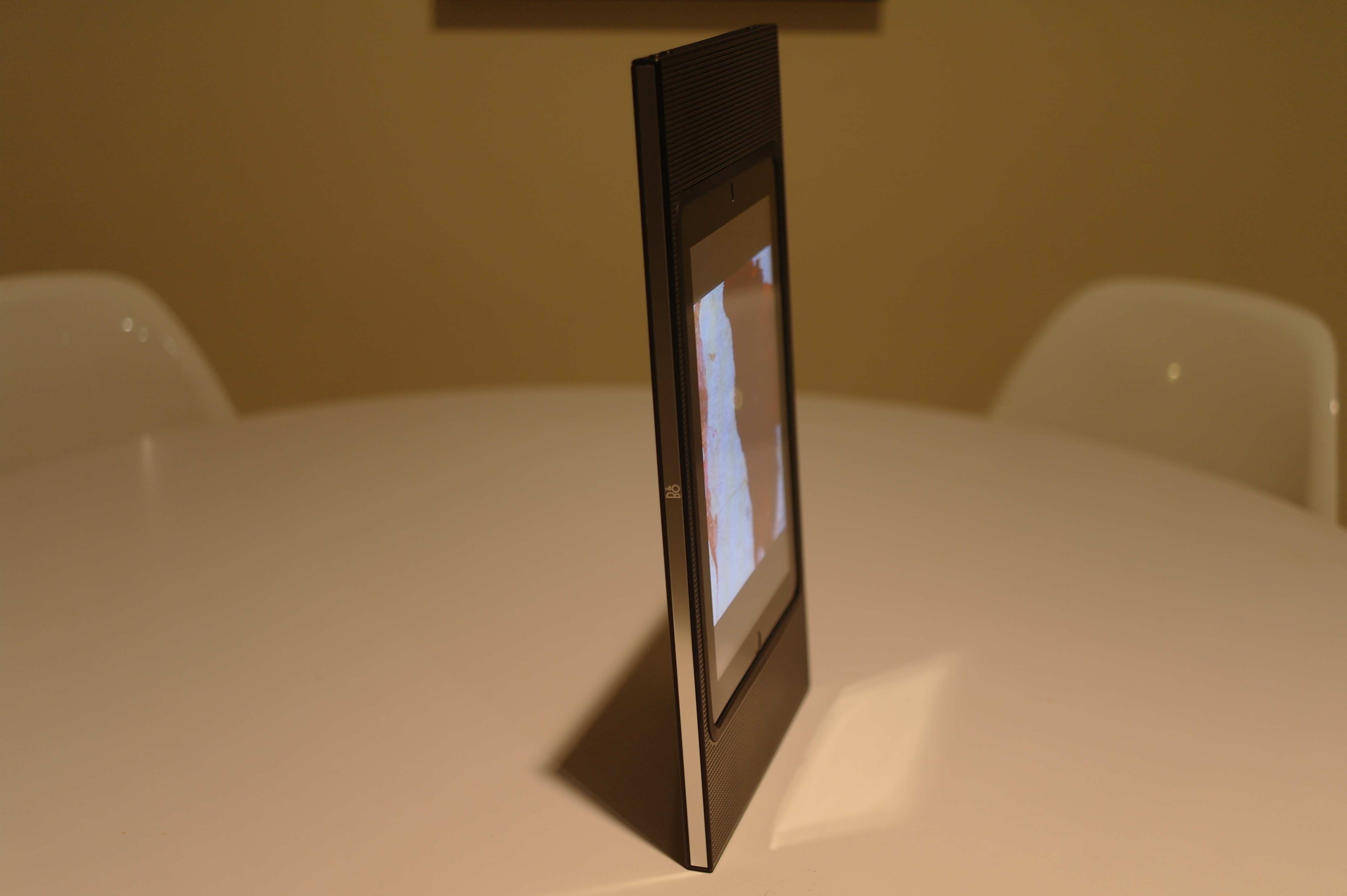 The unique triangular design of the sides of the BeoPlay A3 mean that one side supports a standard upright landscape presentation, another side supports an upright portrait orientation, while the two remaining sides are thin and allow the device to lay flat on a table with a leading edge down on the table for either portrait or landscape orientation. It’s quite a stunning design worthy of a design award on its own, in our not so humble opinion.