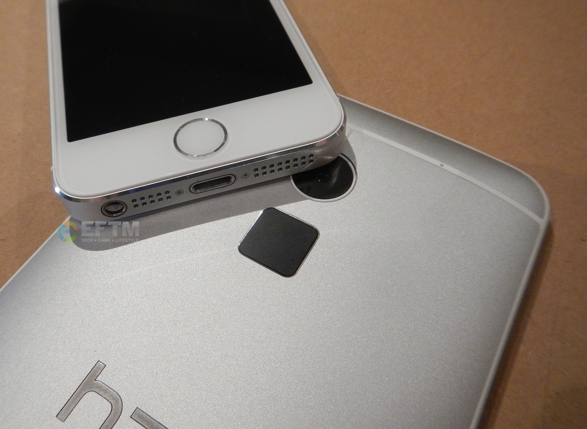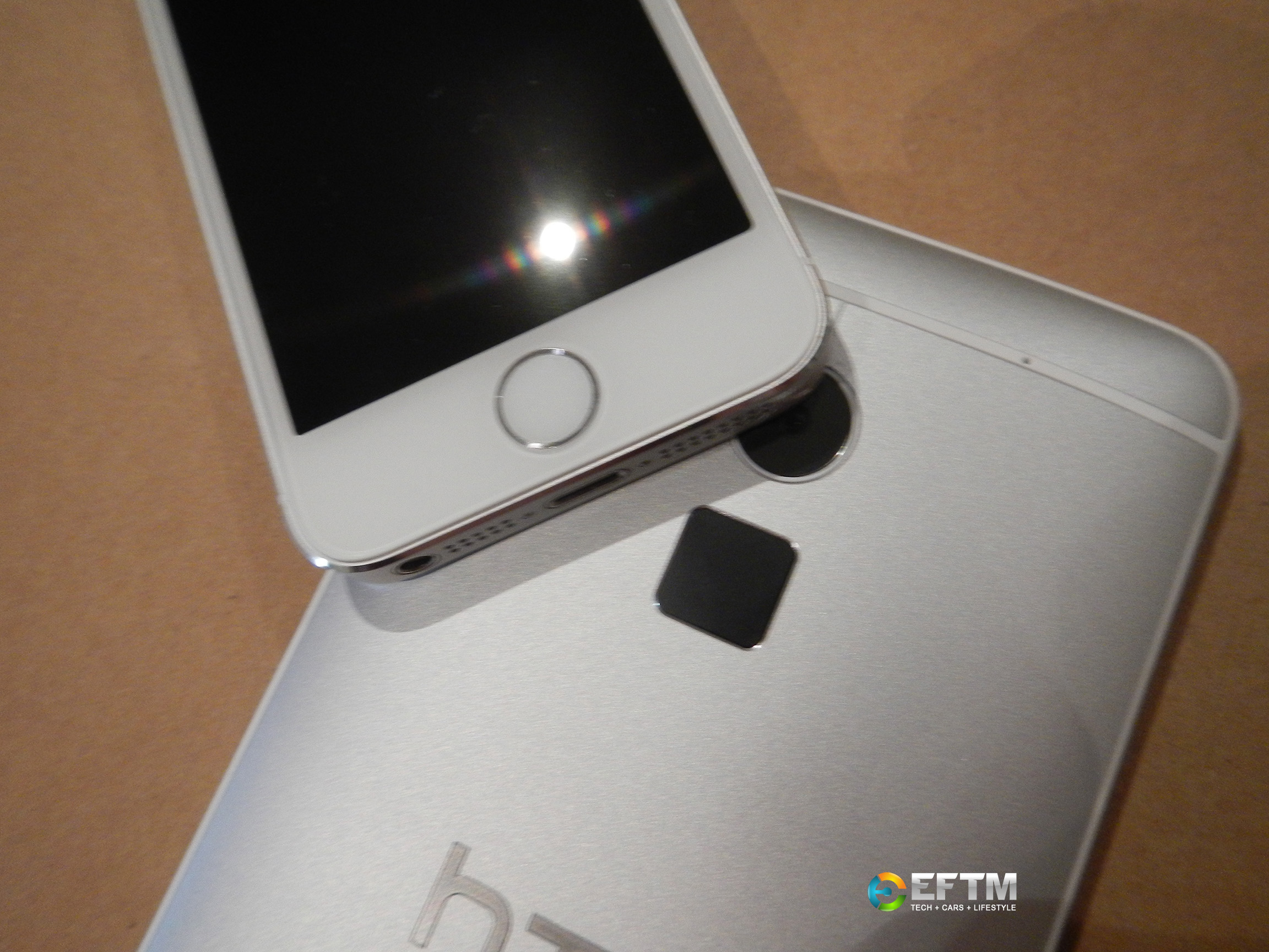 - HTC One Max fingerprint scanner alongside iPhone 5s with fingerprint scanner