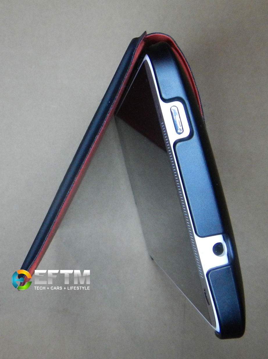 The Power Flip case looks just like any other flip over case which covers the screen. It’s as thin on the back to allow the device not to lose its form and shape, yet it packs an additional 1200mAh battery – that’s an extra 30% more power. Where? In the cover over the screen. A wafer thin battery sits folded on top of the screen while your phone is at rest, or folded behind the screen when in use.