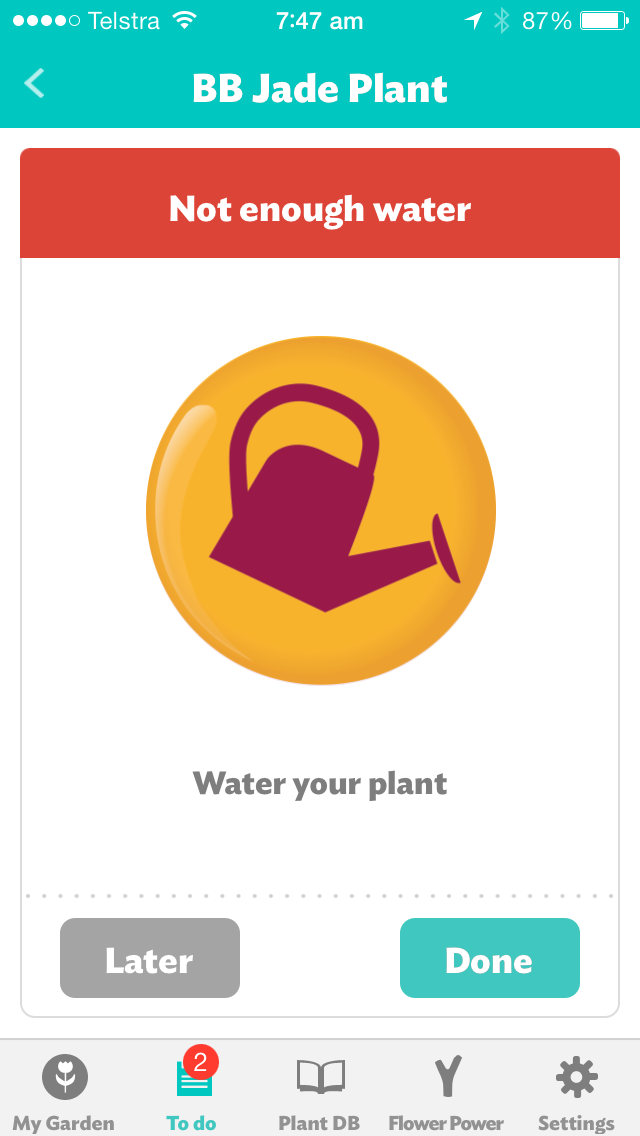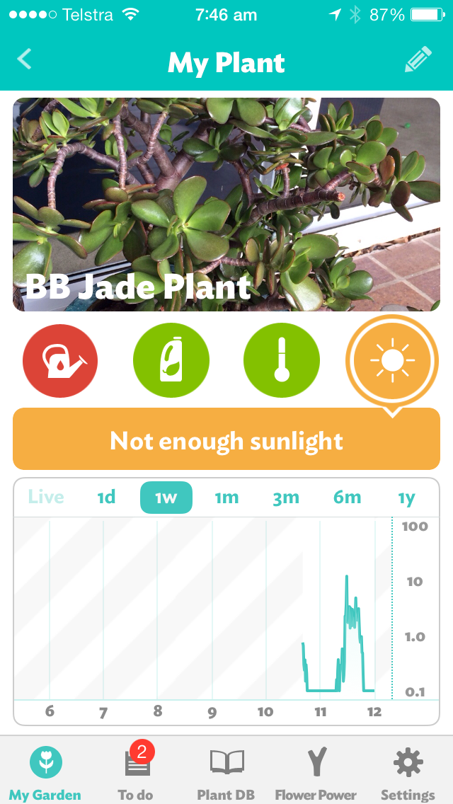 On day one the Jade plant at my mother-in-law’s home was pleading for water and more sunlight – as if the app had become a voice for this previously unheard plant.