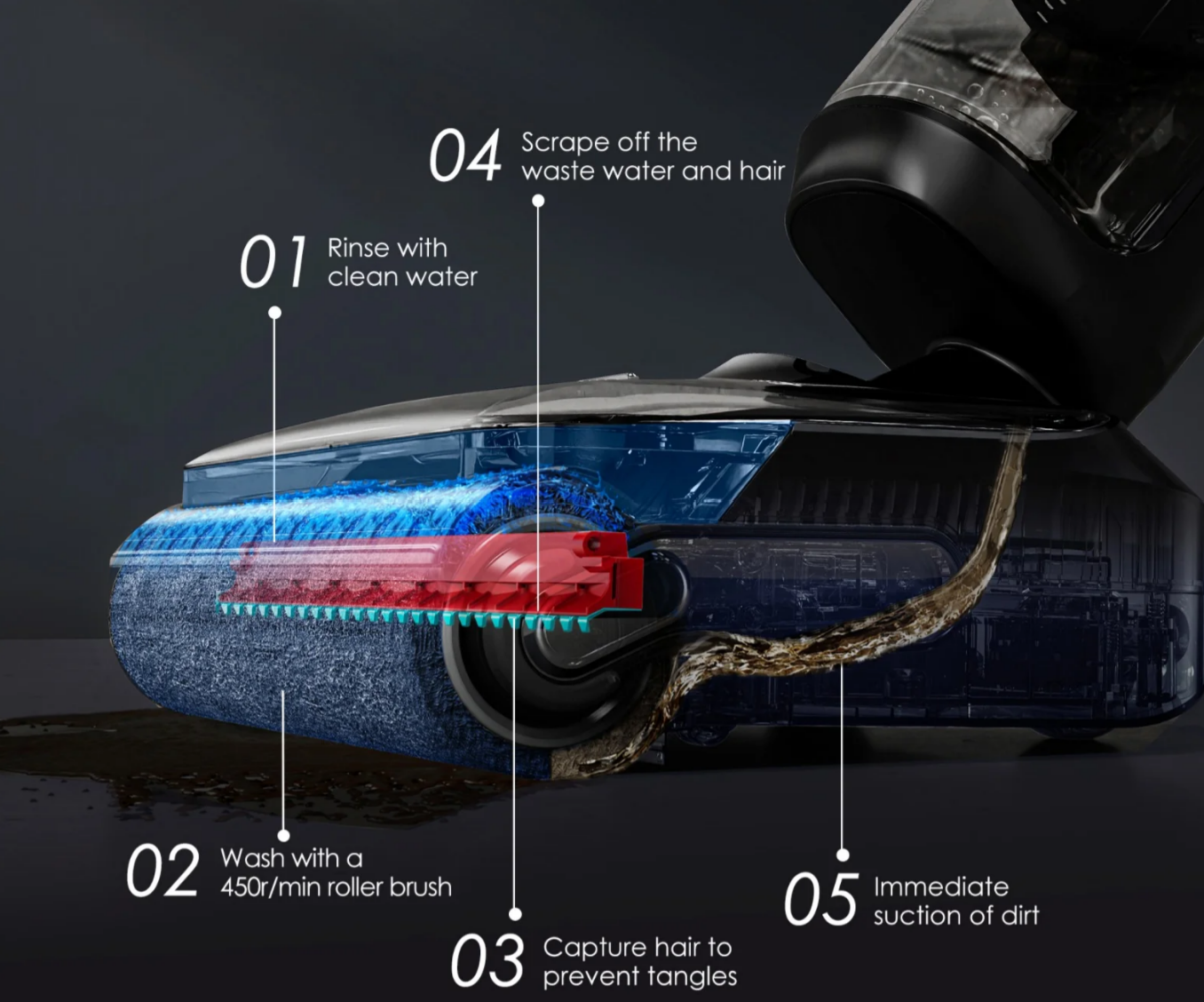 The cleaning of the vacuum is relatively quick and involves cleaning the roller with heated water, followed by a five-minute drying with 85℃ air.