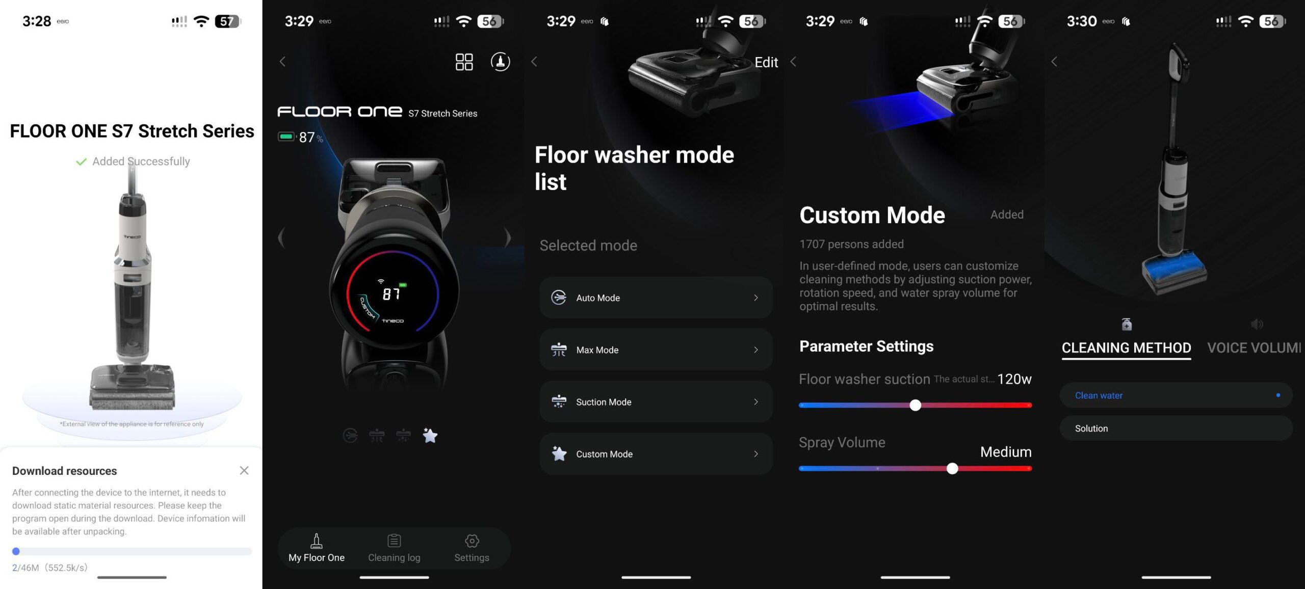 Charge it up, and you are good to go. If you wish to customise the clean, you can connect the vacuum to the Tineco app, but this is not essential for other cleaning modes. The possible modes include Custom, Auto (for basic cleaning), Max (for heavy smudge cleaning), and Suction (for water and mess suction).