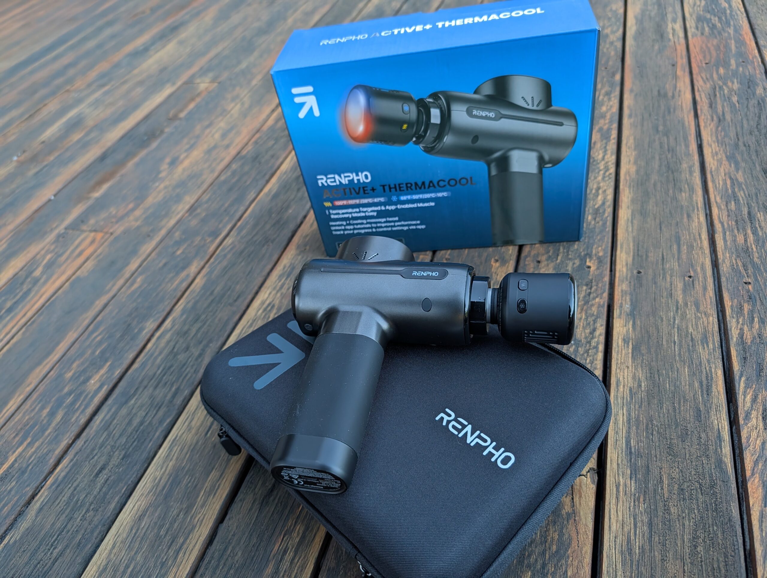 I may be over my injuries but I am now 52 years old so warm up and recovery are especially important to prevent any further injuries. The Renpho Active+ Thermacool Massage Gun is perfect for that – not just a massage gun but one with heating and cooling attachments.
