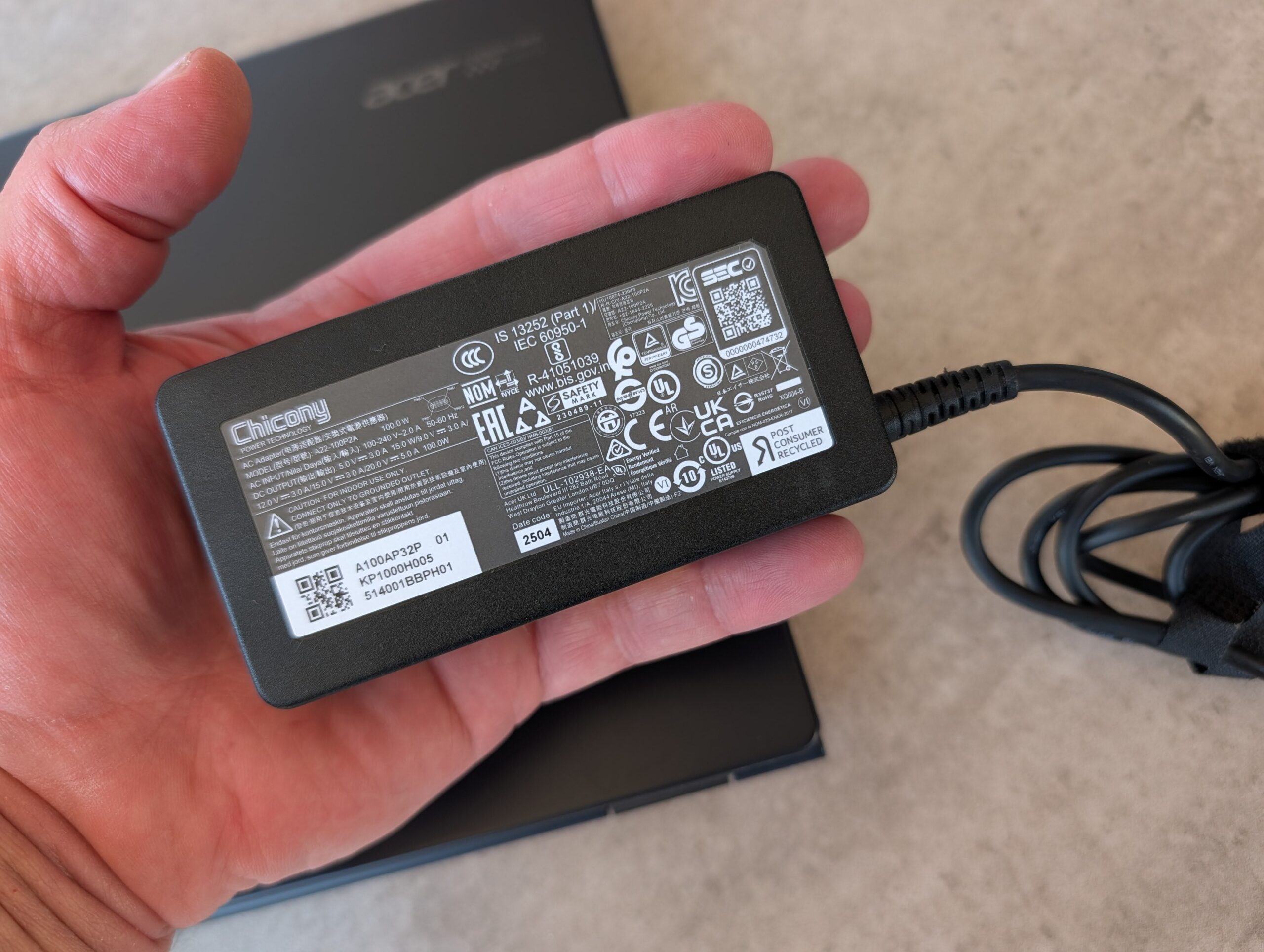 Charging is quick with the included 100W charger, which is nice, since many laptops come with much slower chargers.