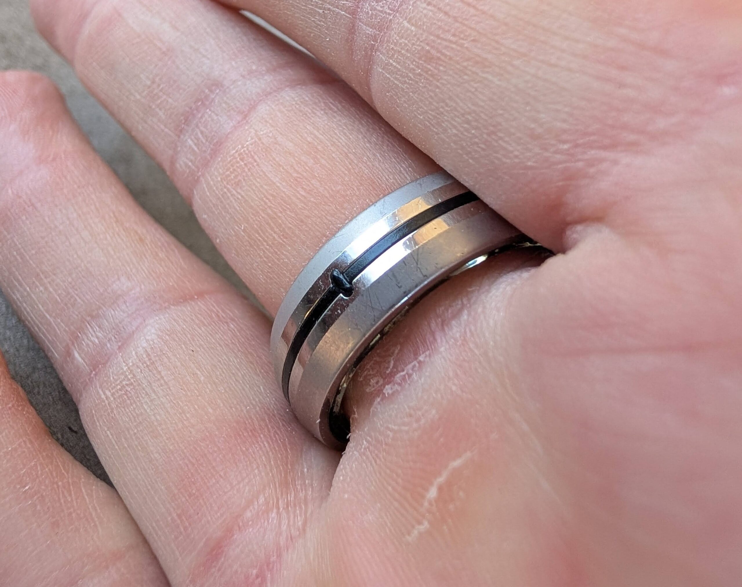 The ring is available in two colours, Titanium Silver and Carbon Black, which are quite stylish because they are not just a single colour but have some design and style, and they actually match my wedding ring nicely.