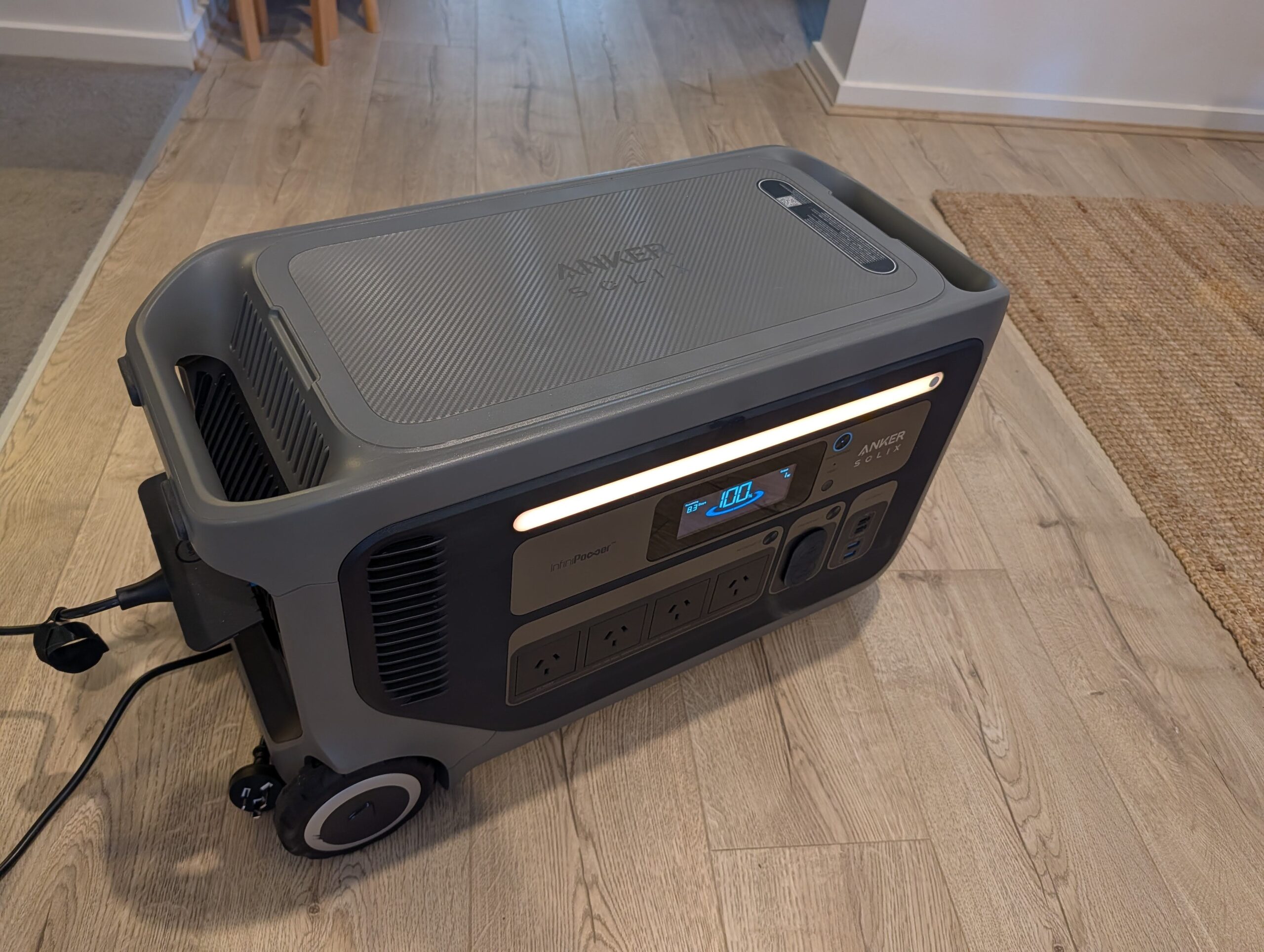 As part of the above review, Anker sent me its Solix F3000 power station to check out. The power station is a serious unit with a possible 3,600W AC output, ideal for camping holidays, when your house loses power, or long road trips.