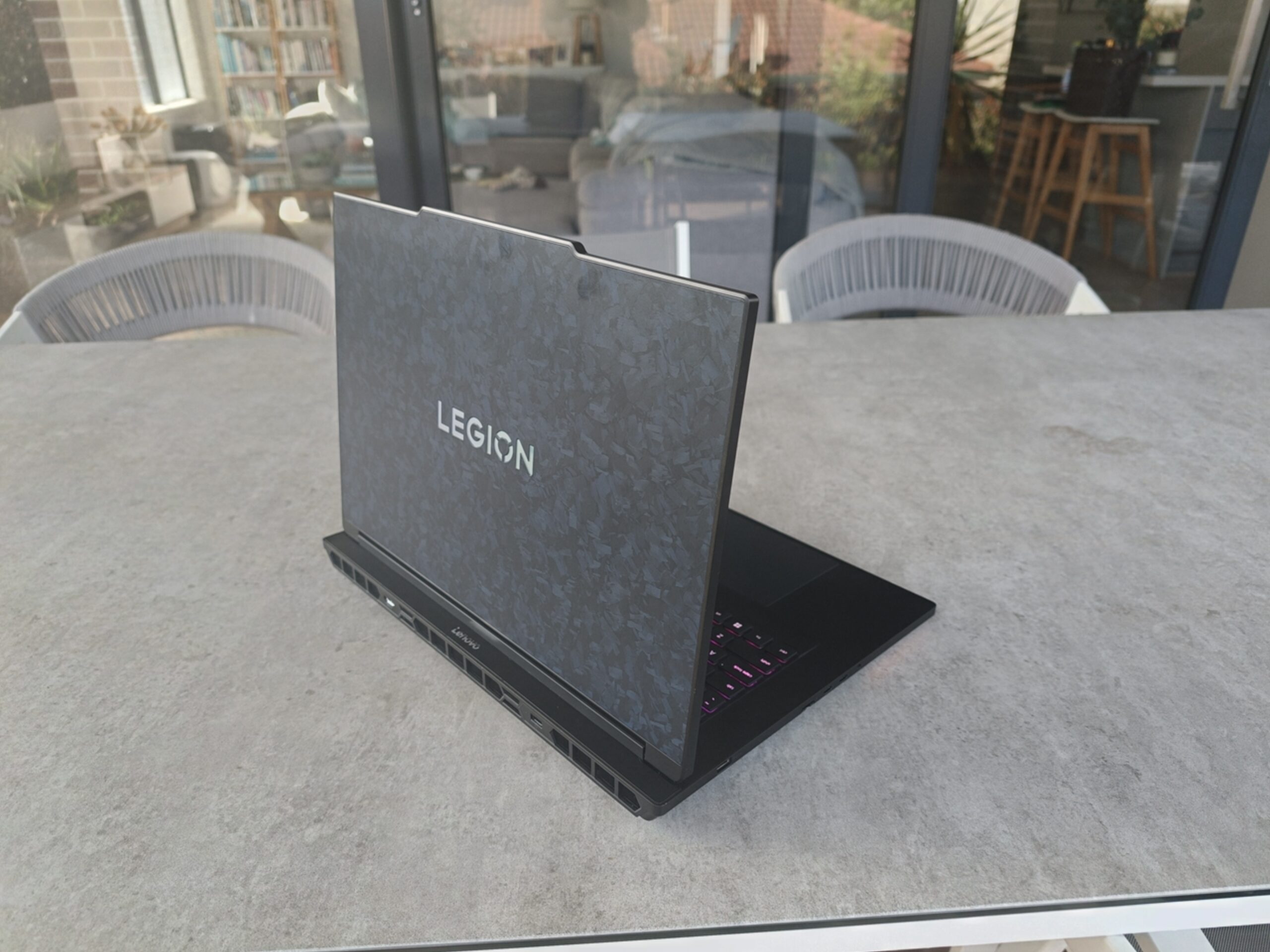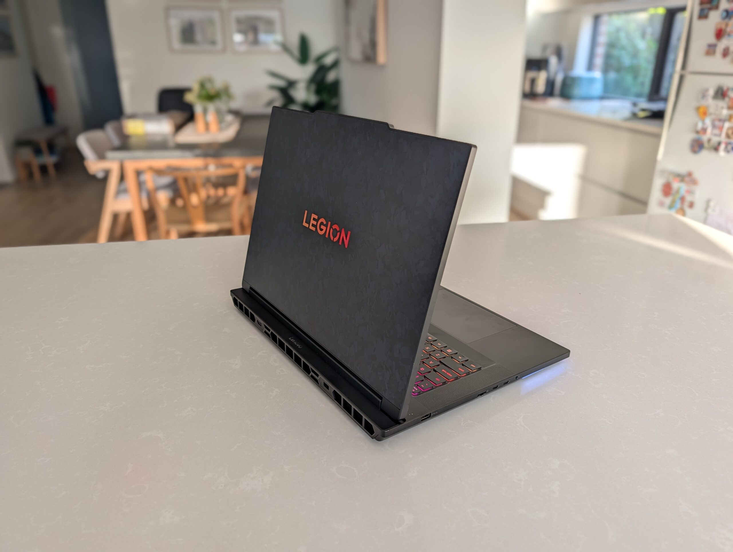 As soon as I opened the box for the Legion 9i, I was amazed by what Lenovo had done. Sure, a lot of gaming laptops have RGB lights in various places, but even the carbon fibre lid looks great, and that’s before even turning it on.